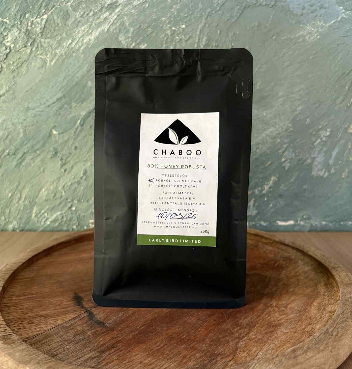 Ütős High-Quality Honey Robusta, intenzív étcsokoládé, karamell és mogyoró jegyekkel. Mosolyra fakasztó energiabomba.
